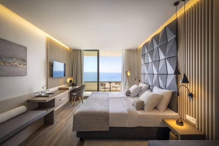 Das Hotel bietet stilvolle Deluxe – Doppelzimmer mit Doppelbett, Klimaanlage, Minibar, Safe und kostenfreiem Wi-Fi. Für noch mehr Komfort und Entspannung sorgen die Pools, die Dachterrasse mit Panoramablick und das großzügige Spa Angebot, das unter anderem eine Massage und Hamam Behandlungen umfasst. Wer auf der Suche nach einem aktiven Aufenthalt ist, kann die Beachbar und den nahegelegenen Strand nutzen oder sich im modernen Fitnessbereich auspowern.