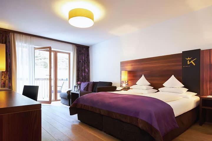 Es verfügt über einen 2.500 m² großen Wellnessbereich mit In & Outdoorpool, Saunalandschaft, Beautybereich und Panorama-Dachterrasse mit grandiosem Ausblick. Alpine Wellness wird hier großgeschrieben, deswegen könnt ihr gegen Aufpreis Behandlunge, Bäder und Massagen buchen. In den Restaurants, der Bar Zeitlos 989 und Bar Himmelnah 999 werdet ihr kulinarisch verwöhnt.