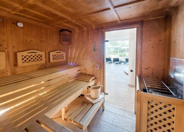 Es verfügt über ein Restaurant, eine Bar, einen solar-beheizten Außenpool sowie einen Wellnessbereich mit Finnischer Sauna, Dampfbad und Infrarotkabine.