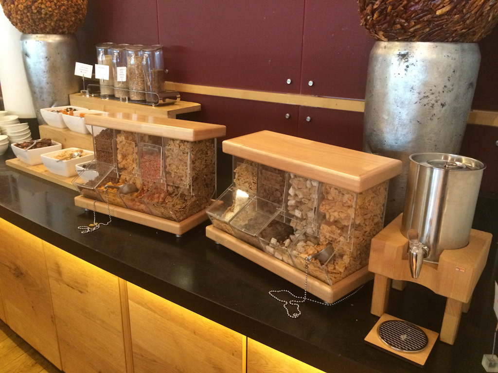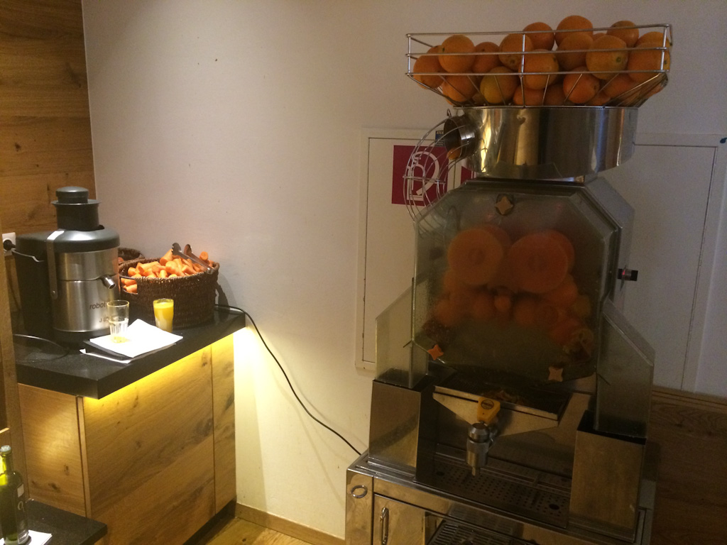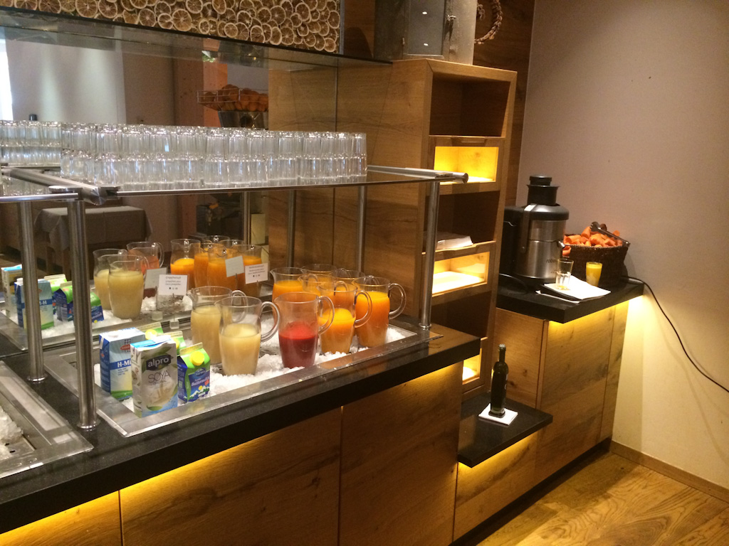 Wie ihr auf den Fotos sehen könnt, bietet das Frühstücksbuffet alles für einen guten Start in den Tag. Eine große Auswahl an diversen Broten & Weckerl, Käse & Wurst, Cerealien, Marmeladen & Aufstriche, Obst, Joghurt, Kuchen und warme Speisen (Omelette,  Pancakes, Eier, Ham & Eggs u.s.w.). Zum Trinken habt ihr neben einer Auswahl an vielen Teesorten und diverse frischen Fruchtsäften auch die Möglichkeit frisch gepressten Orangesaft oder Karotten / Apfelsaft zu zapfen.