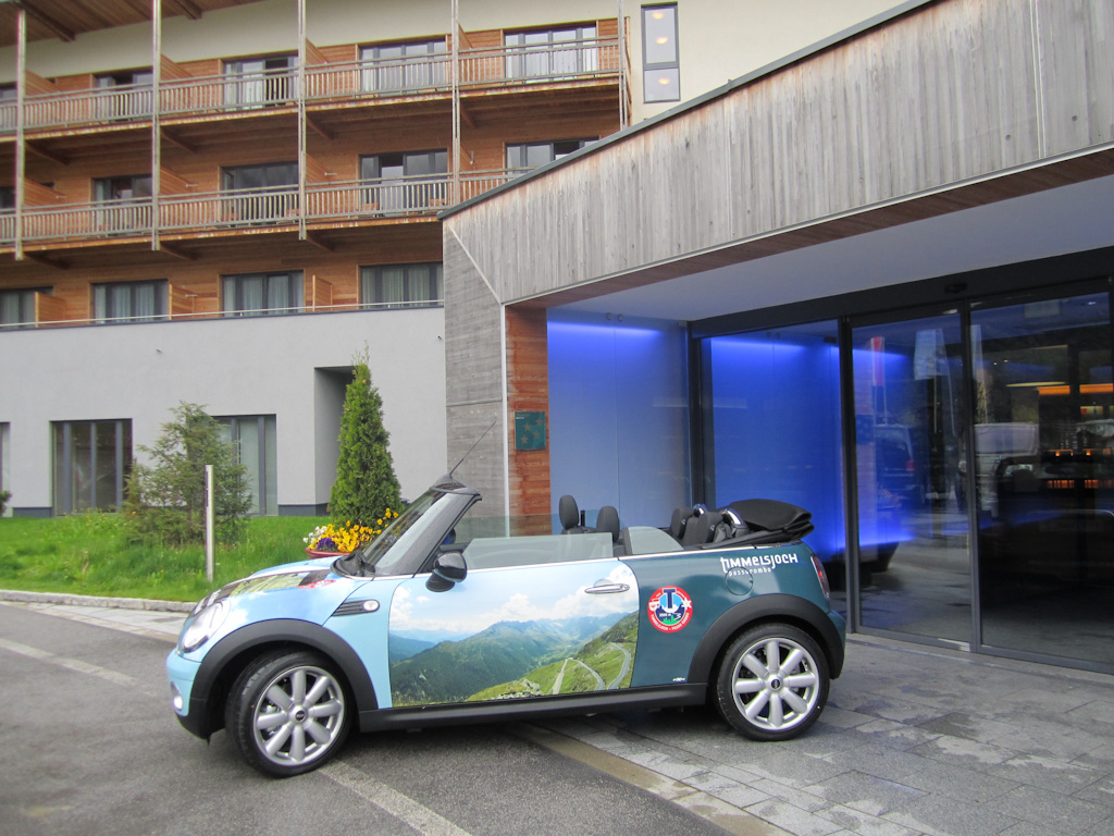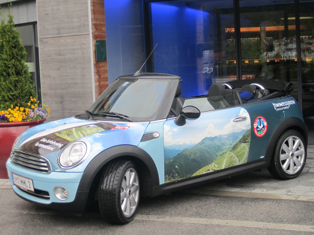Ebenfalls kostenlos habt ihr die Möglichkeit euch einen Mini-Cooper Cabrio für die Fahrt über das Timmelsjoch auszuborgen. Es ist nur das verbrauchte Benzin nachzutanken.