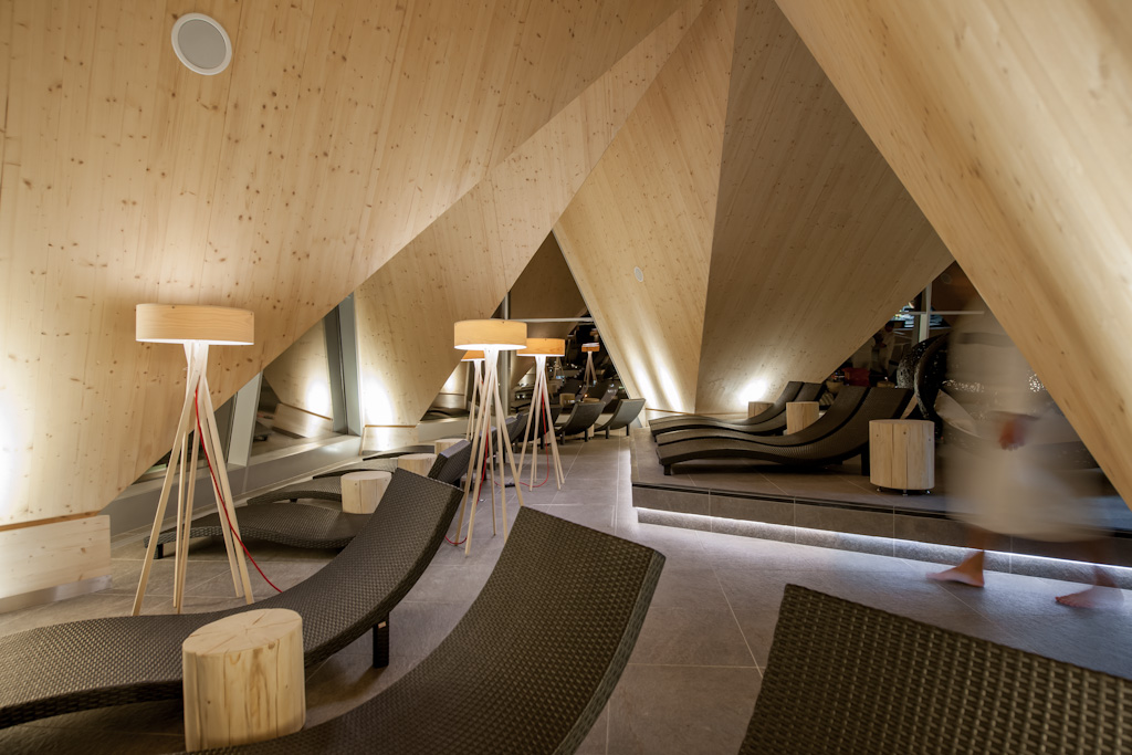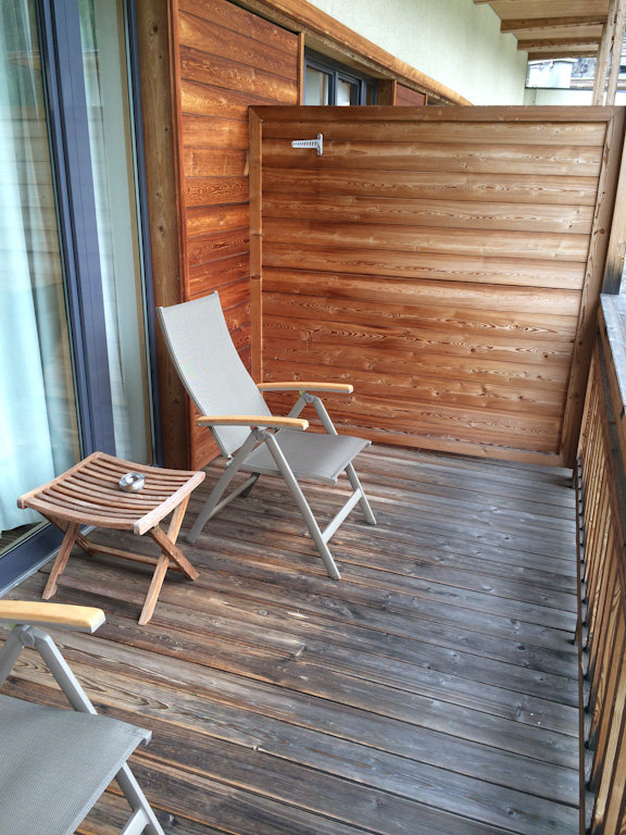 In beiden Bereichen gibt es Saunen, Becken und Ruhezonen. Im oberen Bereich (Textilzone) gibt es eine sehr große Terrasse mit Liegemöglichkeiten und auch Decken, falls es nicht zu warm ist. Die finnische Sauna hat so wie auch die Schluchtensauna in der Saunawelt eine Glaswand bei der ihr die Aussicht auf das umliegende Gebirge genießen könnt.