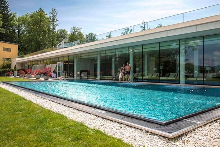 Es verfügt über einen 3.600 m² großen Wellnessbereich mit beheiztem Panorama Gartenpool, Indoorpool, Bio Kräutersauna, Dampfbädern, finnischer Außensauna mit Panoramafenster, Infrarotkabine, Edelstein Dampfbad, Whirlpool, Eisbrunnen, Erlebnisdusche und Ruheraum mit Schwebeschaukeln. Zur Ausstattung gehört auch ein privater Beach Club mit Außenpool und Seezugang.
