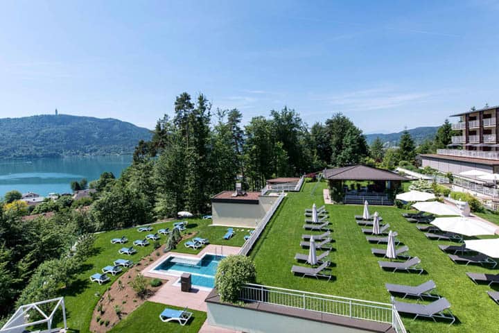 Es verfügt unter anderem über ein ausgezeichnetes Haubenrestaurant sowie einen 3.000 m² großen hoteleigenen Wellnessbereich mit einem 23 m langen Innen- und Außenpool (Panoramablick auf den Wörthersee) und eine Saunalandschaft mit verschiedenen Saunen.